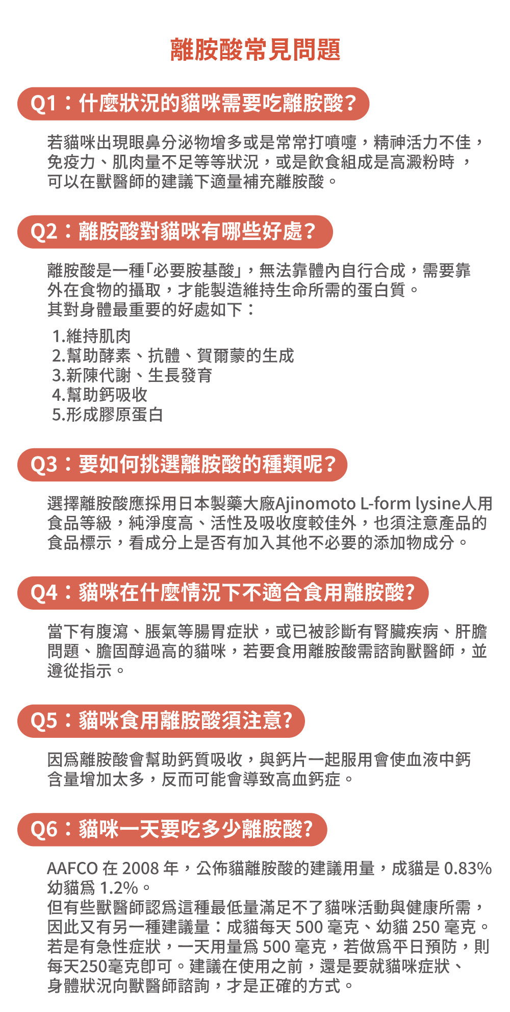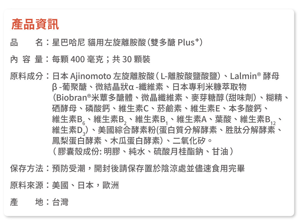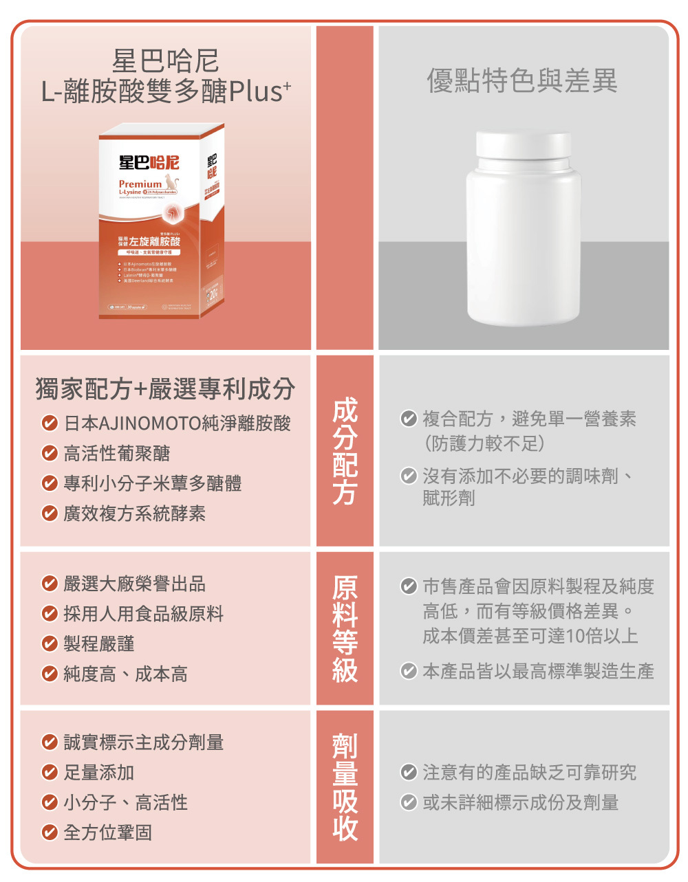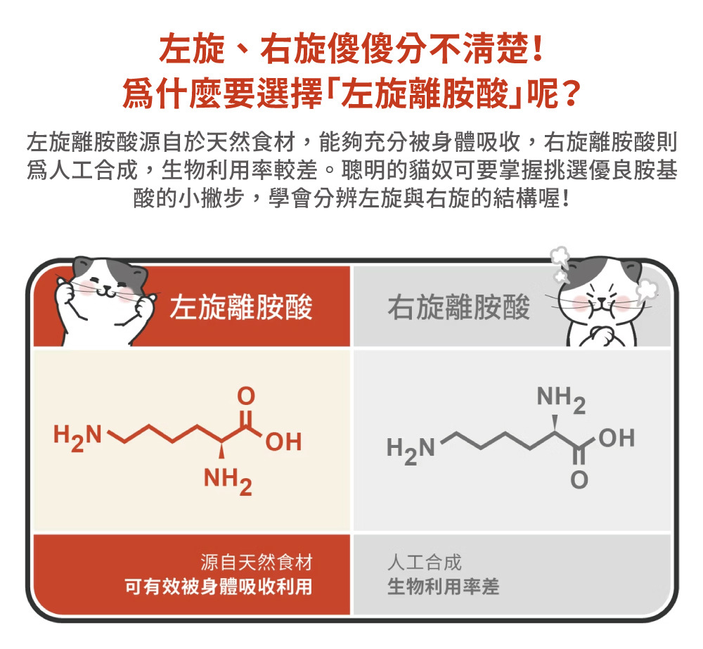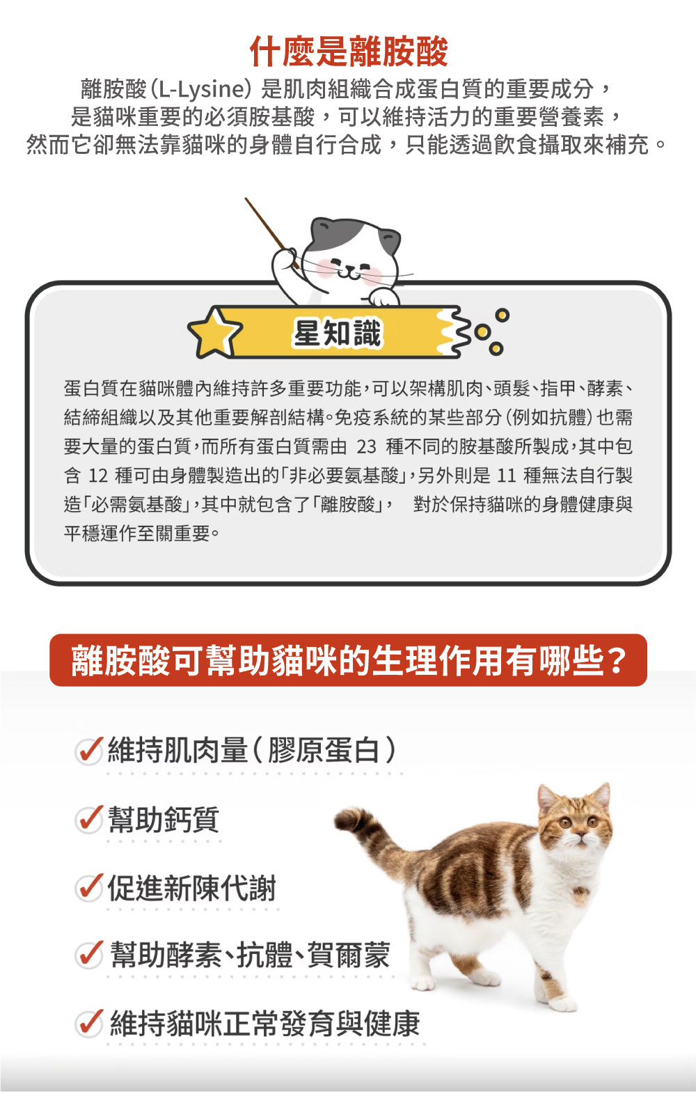 |最高規格安全食品等級|採用天然最高食品級離胺酸,不添加人工香料、色素及防腐劑